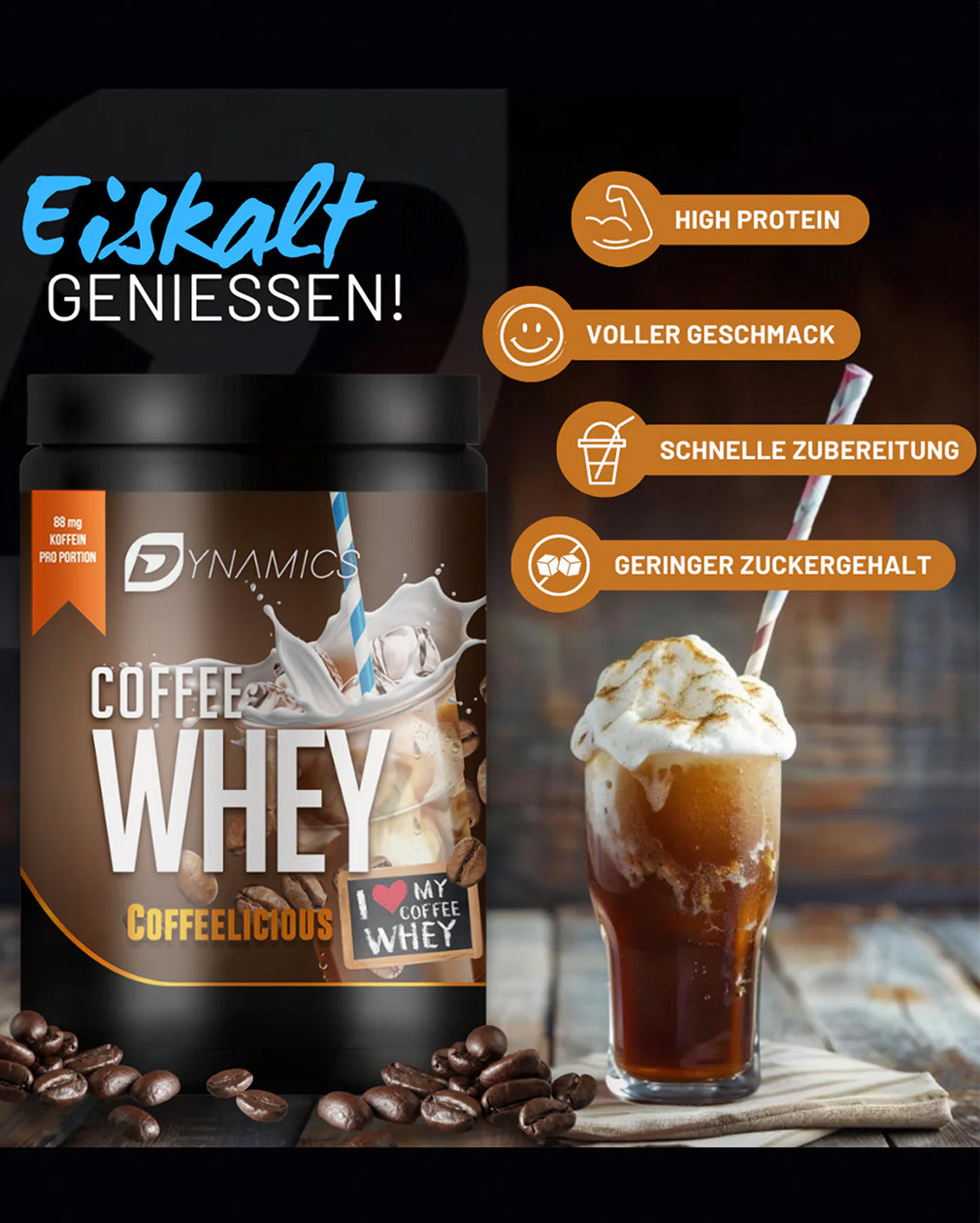 – cremiges Whey trifft auf echten Kaffee.