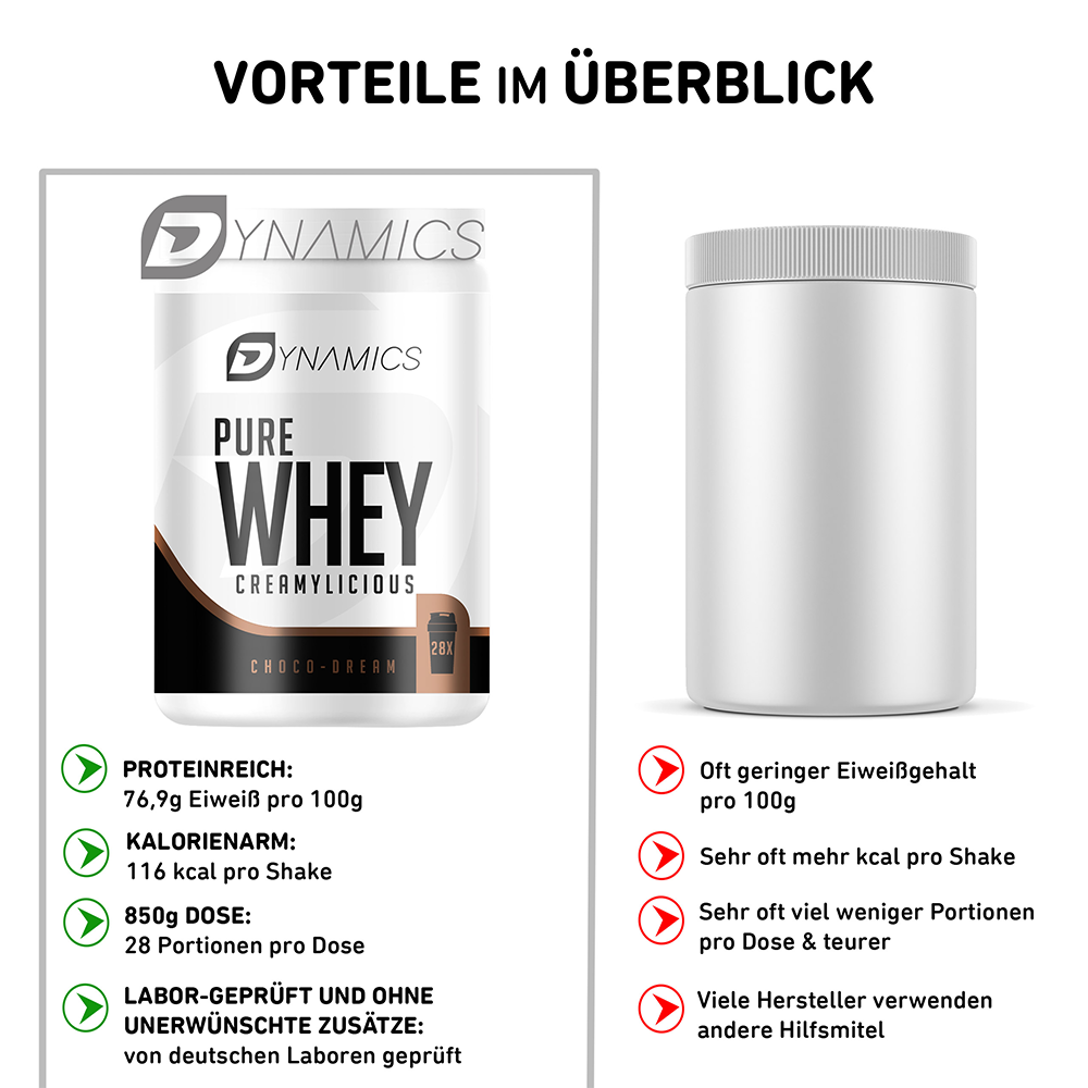 Cremig, mild & eiweißreich: Unser Pure Whey liefert dir hochwertiges Molkenproteinkonzentrat mit vollmundigem Geschmack – ideal als Shake oder zum Verfeinern von Mahlzeiten. Perfekt, um deinen täglichen Proteinbedarf zu decken und deiner Ernährung einen extra Eiweiß-Kick zu geben.